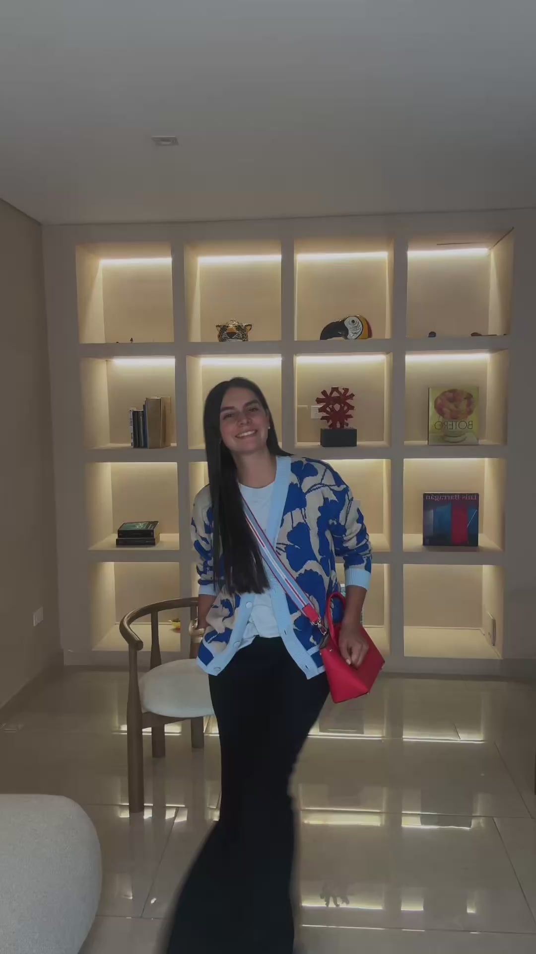 Cardigan Oversized tejido, color beige y azul. 100% Colombiano